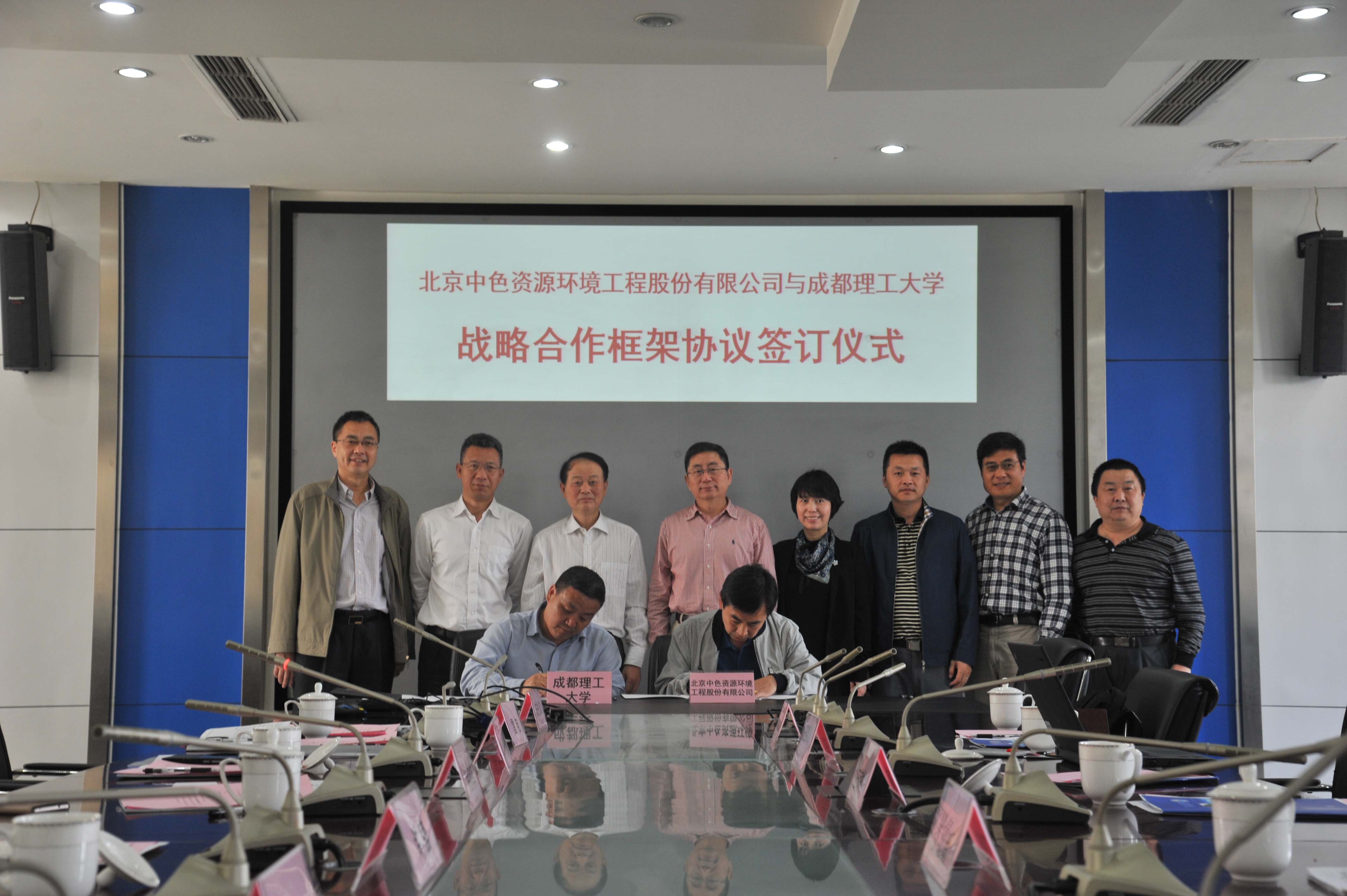 2017年4月19日上午,在地质灾害防治与地质环境保护国家重点实验室(以下简称实验室),成都理工大学与北京中色资源环境工程股份有限公司(以下简称“中色环境”)举行战略合作框架协议签约仪式,双方代表实验室常务副主任许强与中色环境总经理丁继新签署了合作协议。签约仪式由成都理工大学副校长刘树根主持。